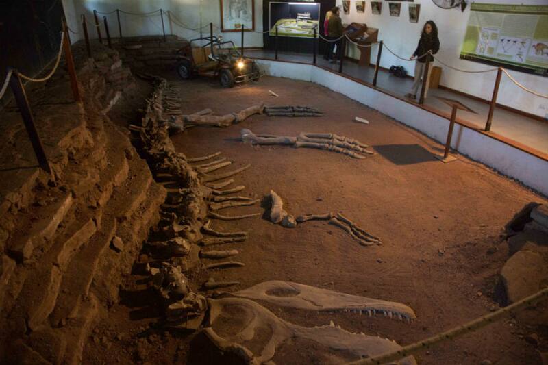 El Museo Paleontológico Villa El Chocón está en la provincia de Neuquén, en Argentina, y ahí podrás conocer algunos esqueletos de hasta 14 metros de largo.