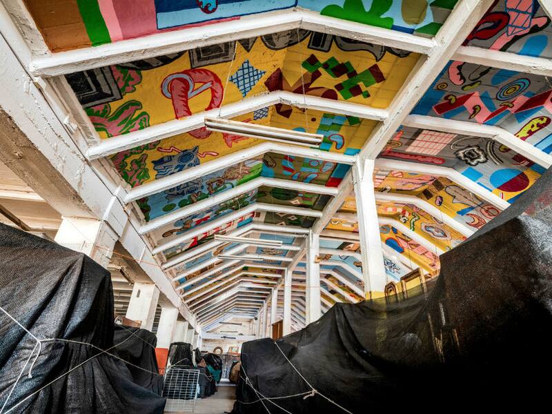 En 2018 vino especialmente desde allá para pintar en la cubierta del persa su mural de mayor envergadura: tiene 500 metros, lo que equivale a un edifico de 12 pisos.