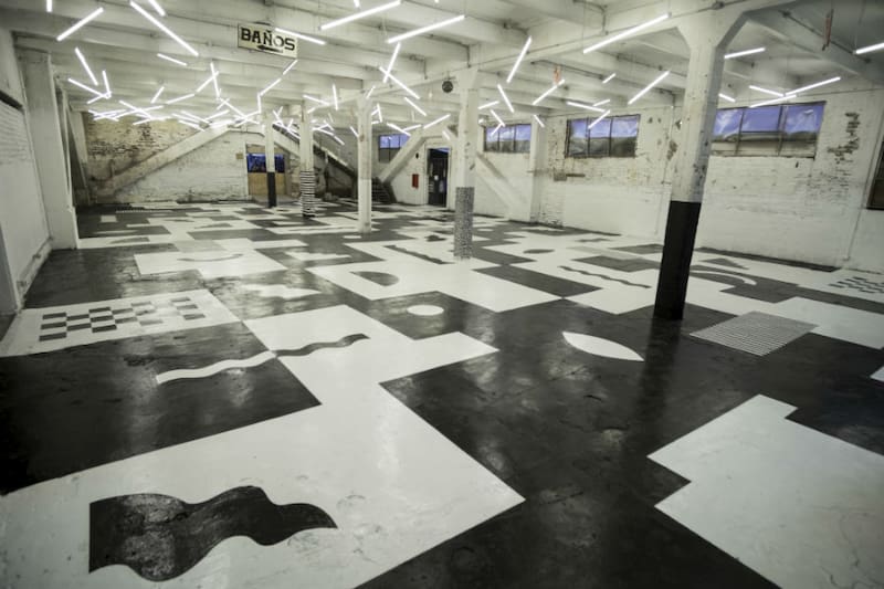 En todo el suelo de este nuevo lugar es donde puedes ver Local 54, un llamativo mural de la artista Paula Godoy.