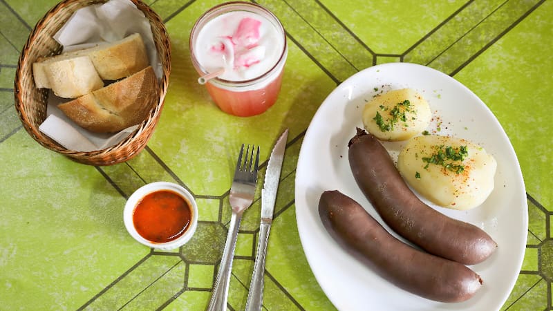 También el arrollado ($ 5.200), con papas cocidas, que tal como las prietas con nueces ($ 5.900), don Mario manda a hacer a una carnicería del barrio, cosa de que tengan ese saborcito casero, en tripa de cordero, nada de plástico. Pesan casi un kilo y se sirven con papas cocidas.