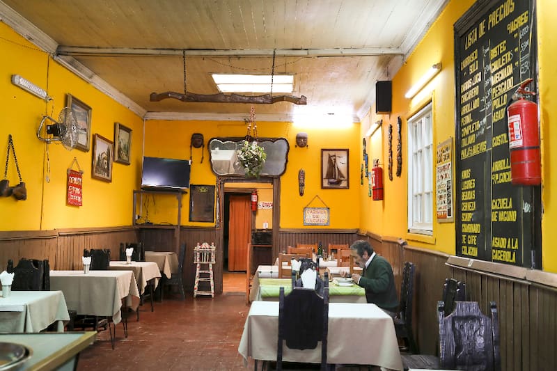 Un lugar donde te sentarás en antiguas sillas fraileras de madera y que tiene historia, ya que cuentan que ahí mismo grabó Gepe.