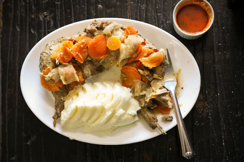 Otro de los platos que es posible que te encuentres son los porotos con rienda ($ 4.500), que vienen con ensalada, pan y pebre; o el pollo al jugo ($ 4.500), con arroz, ensalada o sopa, por ejemplo.