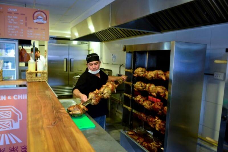 La gracia de su horno es que aunque no emite contaminantes, es a carbón para darle al pollo ese toque ahumado. Además, tiene dos tipos de papas fritas, las clásicas para los niños ($ 990 el cucurucho) y unas rústicas, de corte más grueso, con piel y un suave condimento de ajo para los mayores ($ 1.490).