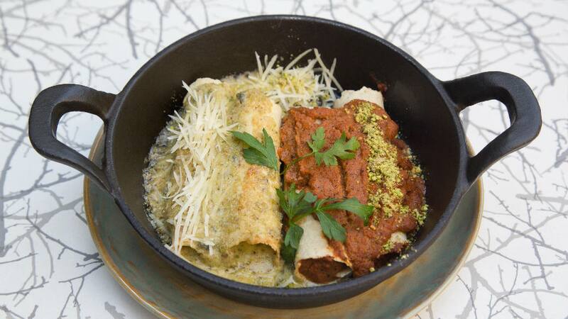 También puedes pedir unos exquisitos canelones caseros, esa pasta típica de la comida italiana que, acá, hacen en dos estilos. Uno rellano de salsa pomodoro, pavo y champiñones, y el otro con salsa blanca, pistachos y queso azul. Todo con bastante queso parmesano encima.