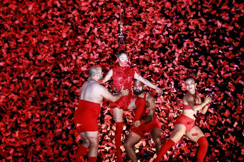 Una combinación de circo, performance, danza y música, todo en color escarlata, que de seguro dejará boquiabiertos a los espectadores.