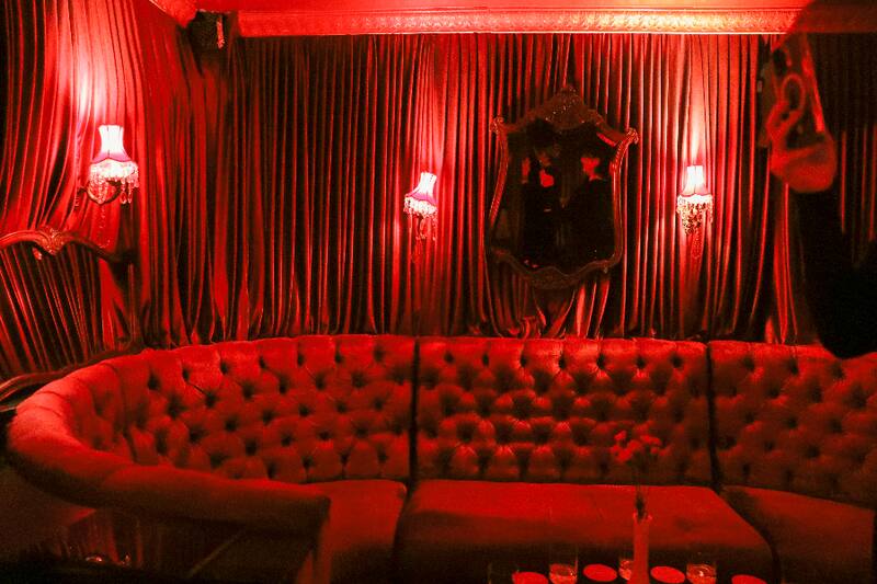 Detrás del baño se esconde este El Speakeasy, un exclusivo bar donde reina el terciopelo, las luces rojas, una barra de lujo y algunas mesas.