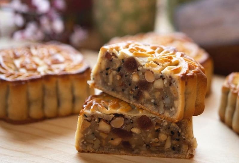 Son rellenos de sabores peculiares, como el semillas de loto con tocino, que tiene maní, sésamo, almendras, nueces, semillas de maravillas, frutas confitatadas y tocino dulce.