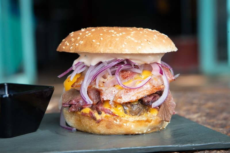Prueba uno con esta última, el Flinstones ($ 9.800), para golosos de verdad, porque lleva una hamburguesa casera, brisket (la carne de tapapecho de Angus ahumada y deshilachada), tocino a la plancha, mucho queso cheddar, cebolla morada y la salsa de la casa.