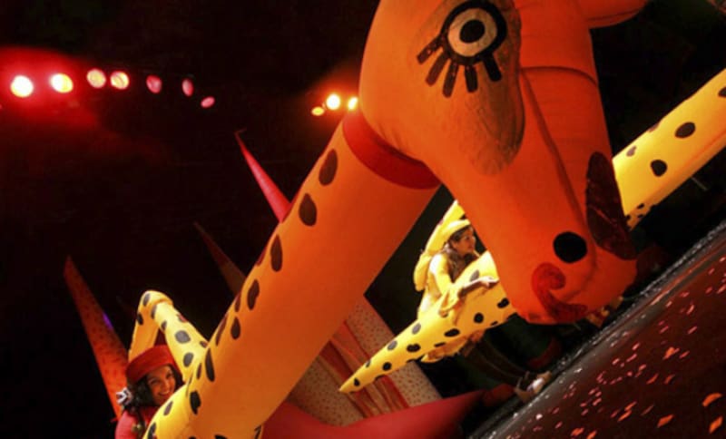 Gigantes de aire Inspiradas en el circo-teatro popular brasileño, Gigantes en el Aire muestra la comedia, drama, habilidades y riesgo de los artistas circenses. "Cuatro payasos que pasan a ser desde los acróbatas hasta los domadores, bailarines y presentador. Nunca olvidando, por supuesto, el espíritu de la calle circo" donde las marionetas gigantes protagonizan la lúdica propuesta internacional.