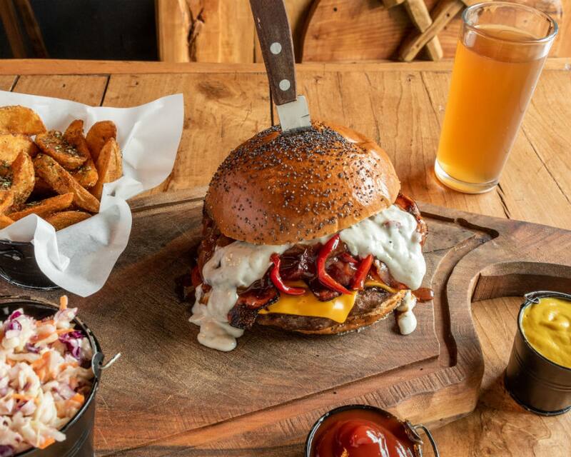 Otra soñada es la que tendrán en La Fuente Reina, con doble carne 100% Angus, pan de papa tostado a la plancha, salsa burger, queso cheddar y tocino crujiente.