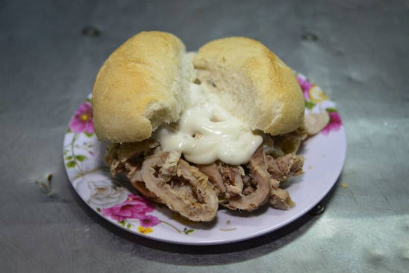 En pan fresco y calentito, jugoso, con palta y un toque de mayonesa. Así es el sánguche de potito de La Picá del Licho, en el local 77 de La Vega Central. Es el único de este mercado donde encuentra este manjar, el favorito del hincha del fútbol y el más vendido en los estadios chilenos.