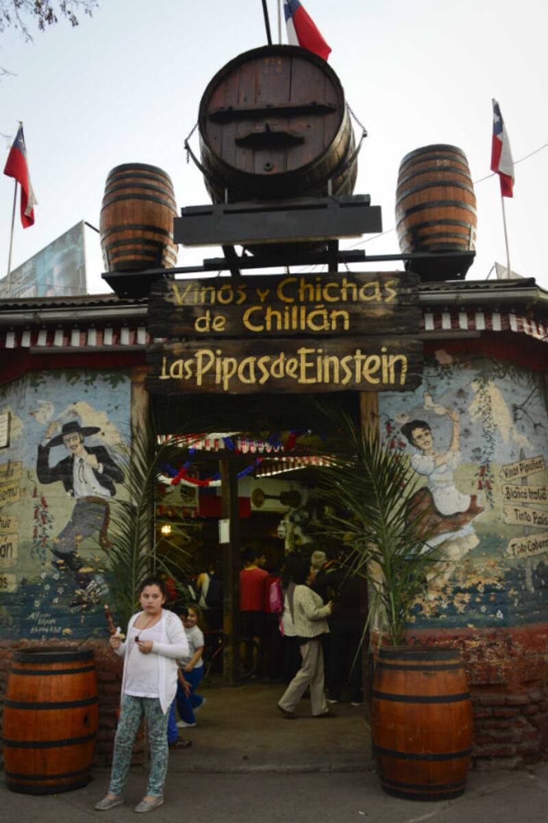 Es probable que al llegar a Las Pipas de Einstein, a un costado del Estadio Santa Laura, en Independencia, se acuerde de las bodegas que antes existían en las casas del campo chileno: entre fardos de pasto, monturas, guadañas, estribos, arados de palo, verá cientos de garrafas. Esos botellones guardan varios tipos de chichas, elaboradas casi todas en Portezuelo, un pueblo ubicado a 25 km de Chillán. Hay blanca y rosada, que son bien dulces, y cocida, que es un poco más fuerte ($ 8.900, el bidón de cinco litros). Lo bueno es que la puede probar antes de comprar.
