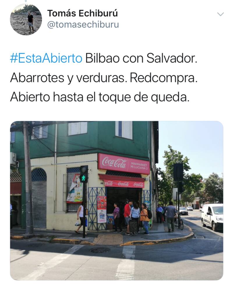 Es una cuenta que estos días ha estado bien activa, invitanando a los vecinos de la comuna a compartir sus datos de lugares que están abiertos en esta contingencia.