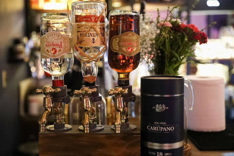 Así, en La Ronería puedes probar “tragos a la roca”, es decir, cortos sobre hielo, de ron como Zacapa Solera 23 ($ 9.990), que tiene aromas a vainilla, caramelo y cacao, con un dejo a roble, tabaco y nuez moscada.