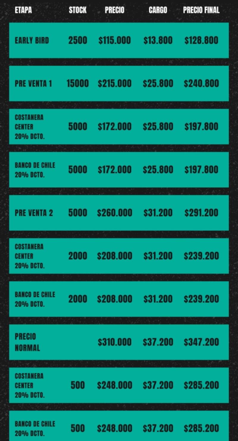 Y es que aunque el festival aun no revela los nombre de los artistas que tocarán en el Parque Cerrillos los días 15, 16 y 17 de marzo próximo, ya dio el vamos a la adquisión de los tickets.