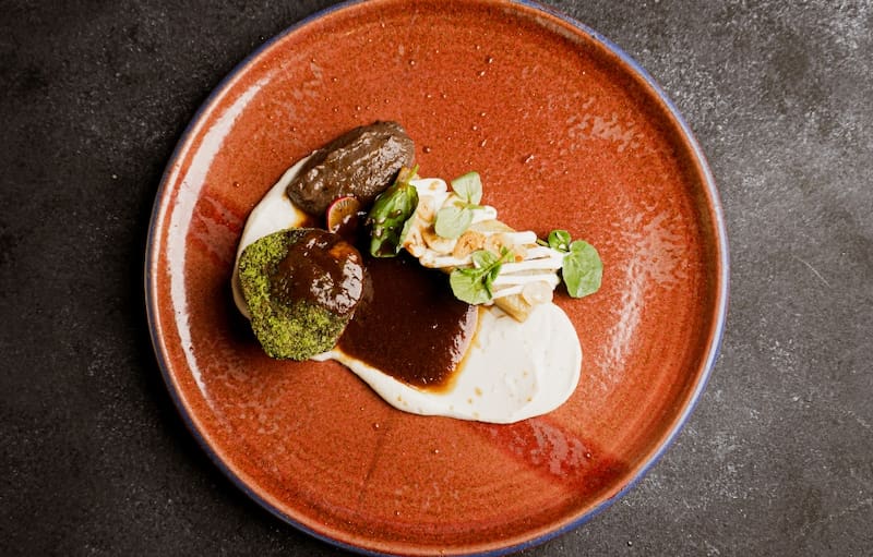 Además de un delicioso cordero chilote ($ 25.000), uno preparado en cocción lenta y que llega la mesa con berenjenas a las brasas, cremoso de vegetales asados y muselina de papas.