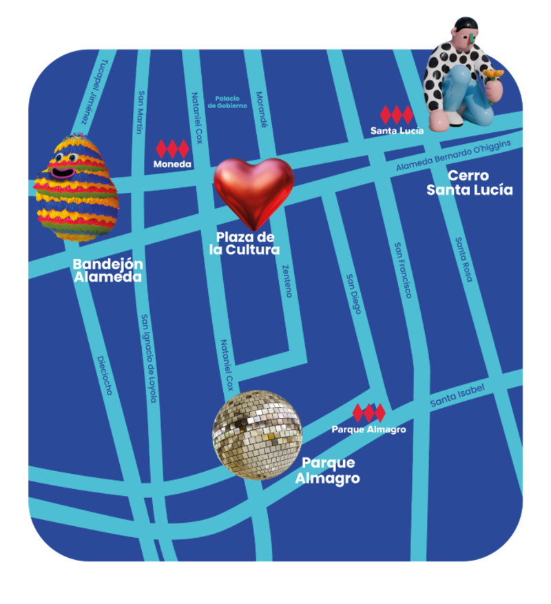 Luego, puedes seguir por Paseo Bulnes hasta el Parque Almagro para soprenderte con otras de las instalaciones internacional del Festival Hecho en Casa 2023.