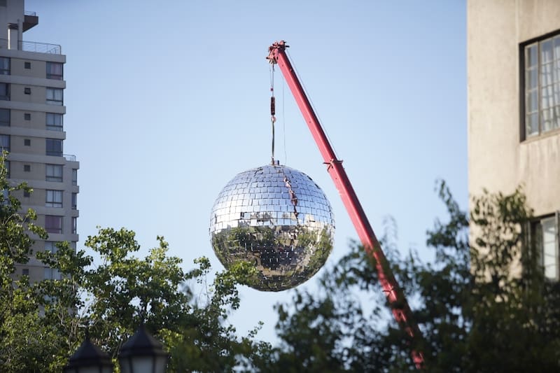 Se trata de Bola disco, creación del nortamericano Michel de Broin, que ha recorrido varias ciudades del mundo y hasta ha obtenido premios.