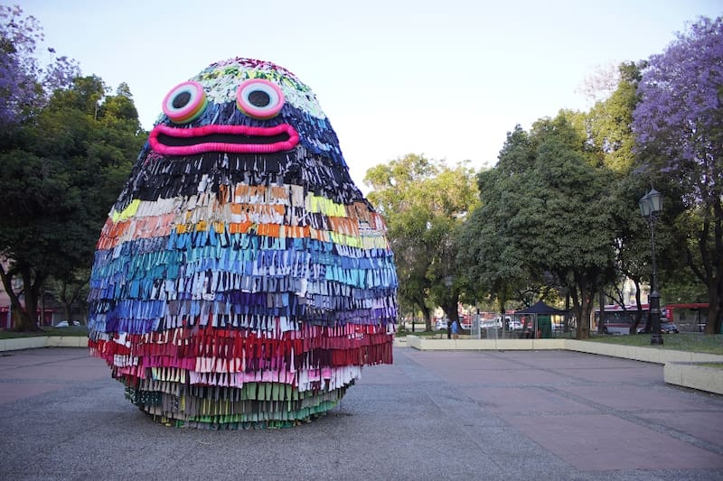 Ahí se encuentra una imponente Piñata, una intervención de los argentinos 12na, de cinco metros de alto y más de 2.000 kilos.