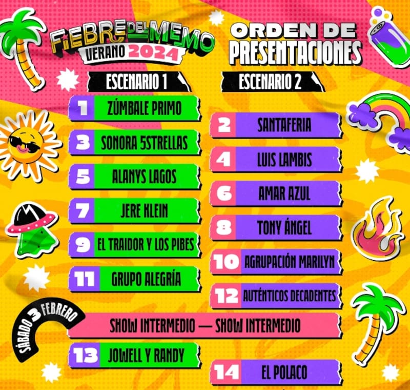 Y es que la fiesta está asegurada en Fiebre del Memo 2024, ya que cuenta con puñado de artistas que desde temprano encenderán al público con sus canciones.