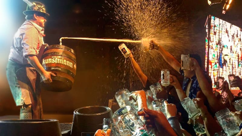 Ahí, tal como dice su nombre, a las 8 PM comenzarán a “pinchar” barriles de cerveza en el escenario del lugar, para rellenar los schops de medio litro de los asistentes (vienen incluidos con la entrada y la repetición cuesta $ 2.000 más). Son más de 15 variedades de cerveza Kunstmann las que se destaparán a la usanza alemana, inyectando aire a cada tonel con una bomba, para que la presión haga salir disparado el líquido.