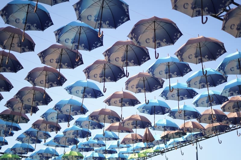 Si vas, justo detrás del puesto de Doña Tina puedes ver una novedosa intervención: un paseo bajo la sombra de más de 800 paraguas, realizada por el colectivo Bla! junto a Copec.