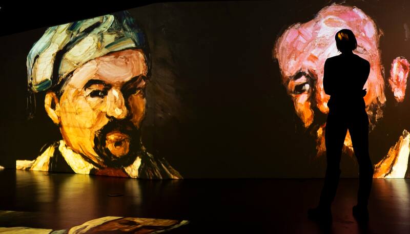 Son en total 40 proyectores láser para dar vida a cuadros de Claude Monet, Paul Gauguin, Edvard Munch, Paul Cézanne, Juan Gris, Robert Delaunay, Paul Klee y Wassily Kandinsky, nombres que en el cotidiano quizás no los conoces pero que al ver las pinturas se reencontrará con clásicos de la historia del arte.