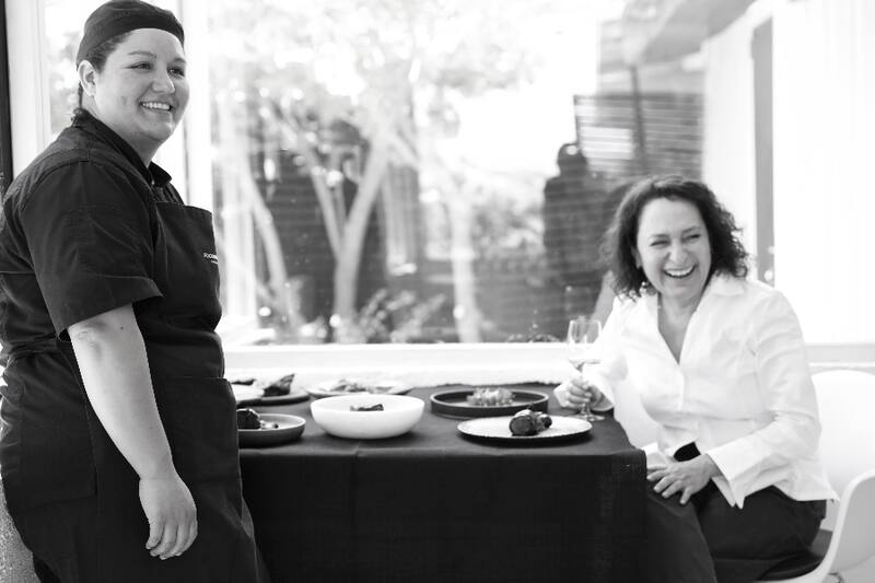 Y esa complicidad es la que sentirás en este cocina, hacia el entorno y con el equipo, familia, y familia elegida, como Rosa Hormazábal, a quien ves en la foto junto a Pilar Rodríguez, y Pablo Miño, parte vital de la cocina de Food and Wine Studio.