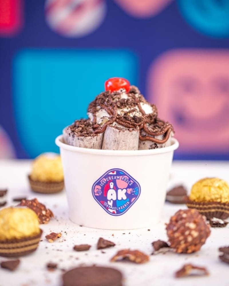 Helados al estilo tailandés, es decir, hechos sobre una plancha fría con distintos tipos de leches y más de treinta sabores para elegir, es lo que encuentras en AK Heladería.