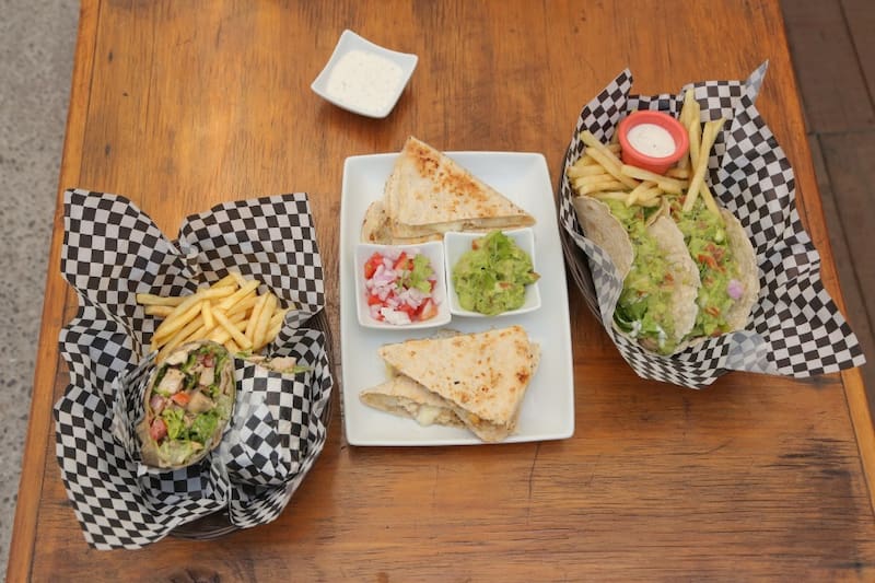 Unas impredibles son las quesadillas mixtas ($ 4.790) de muy buen porte, rellenas de guacamole y carne de pollo y vacuno, más pico de gallo, similar al pebre chileno y ligeramente picante.