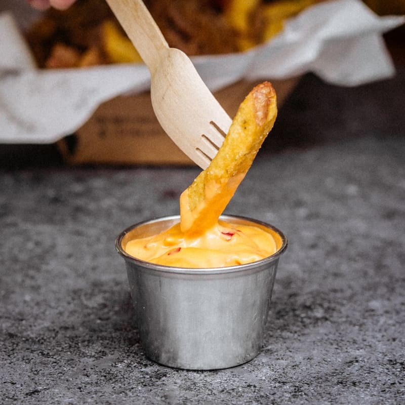 Entre nuestras papas fritas al paso favoritas están las de Fritkot, el local que funciona desde hace un par de años en Providencia, a pasos del Metro Tobalaba.
