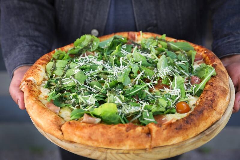 Como La Pecos ($11.990), que lleva mozzarella, tomate cherry, jamón serrano, rúcula, parmesano y un shot de pesto.