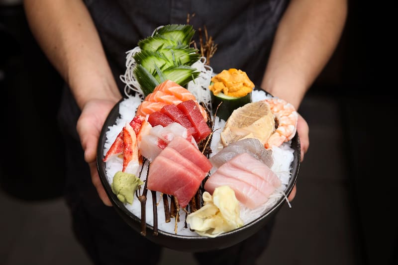 Otra opción son los Sashimi ($ 18.000 los 9 cortes), que son un mix de cortes de pescados y mariscos del día.