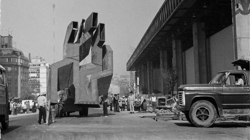 También encontrarás una serie de instantáneas del proceso de fabricación de la obra La chimenea de Félix Maruenda (foto principal), una pieza que estuvo hasta el 2006 en plena calle, y que además de tener una función artística, también tenía una funcional, pues era el ducto de ventilación del casino público instalado ahí mismo.