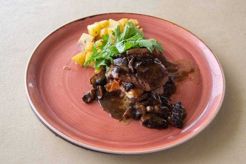 También el filete Giratorio ($ 15.800), que va relleno de jamón de pierna acaramelado y mozzarella derretida, más una salsa de vino, champiñones y papas salteadas.