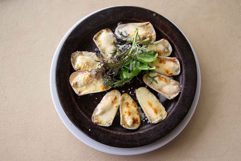 Si se trata de platos que nunca salen de la carta del Giratorio, imposible no mencioar las machas a la parmesana ($ 9.900), con un toque de salsa bechamel y queso.