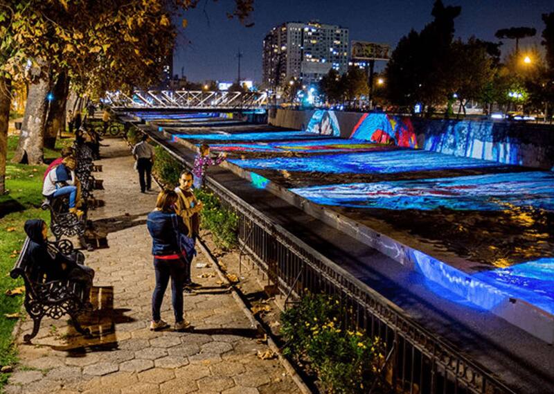 Ahí, se proyectará un mural lumínico de la artista nacional Catalina Rojas, Chile a la luz, el mismo que se pudo ver en el río durante las celebraciones del Bicentenario (en la foto).