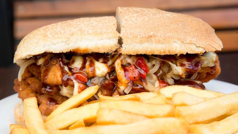 O la "shnitzel" ($ 4.900) que es similar a la milanesa de pollo, bien delgada y crocante, con lechuga, tomate y mayonesa con perejil.