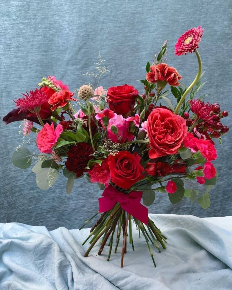 Para este día Día de la Madre armó un ramo especial ($ 39.990), de tonos rojos y magenta, que son entre 26 y 28 varas de rosas, claveles, gerberas y más, e incluye follaje.