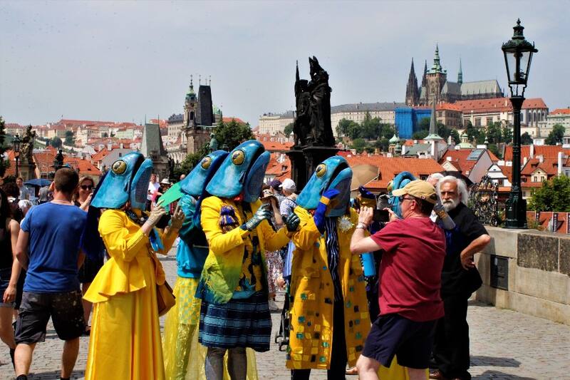 El 2019 se estrenó en Praga la perfomance Peces Caminando! del colectivo nacional Complejo Conejo. Ahí se pasearon cinco intérpretes vestidos de coloridos peces para simular un cardumen que se mueve por la ciudad siguiendo los movimientos de la gente (interpretados por Pedro Gramegna, Andrea Bustos, Raúl Riquelme, John Álvarez y Josefina Cerda).