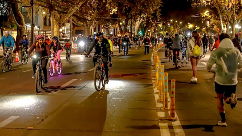 El éxtasis de pedalear a las anchas por una avenida exorcizada de autos, sentimiento que se fomenta cada mañana de domingo en la Ciclorecreovía, solo puede aumentar cuando además se hace al atardecer, con el frescor de la noche sabatina primaveral y las luces de la ciudad como escenario. Serán 3,6 kms libres de motores por la Av. Andrés Bello, en Providencia, con un tramo rosa para concientizar sobre el cáncer de mama.