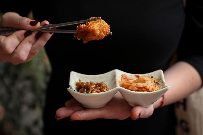 Como kimbap ($ 6.500), rolls al estilo coreano, en base a arroz blanco e ingredientes disponibles envuelto en alga nori; o topokki ($ 8.500), uno de los clásicos que son masas de arroz, con masas de pescado, en una salsa agridulce y picante.