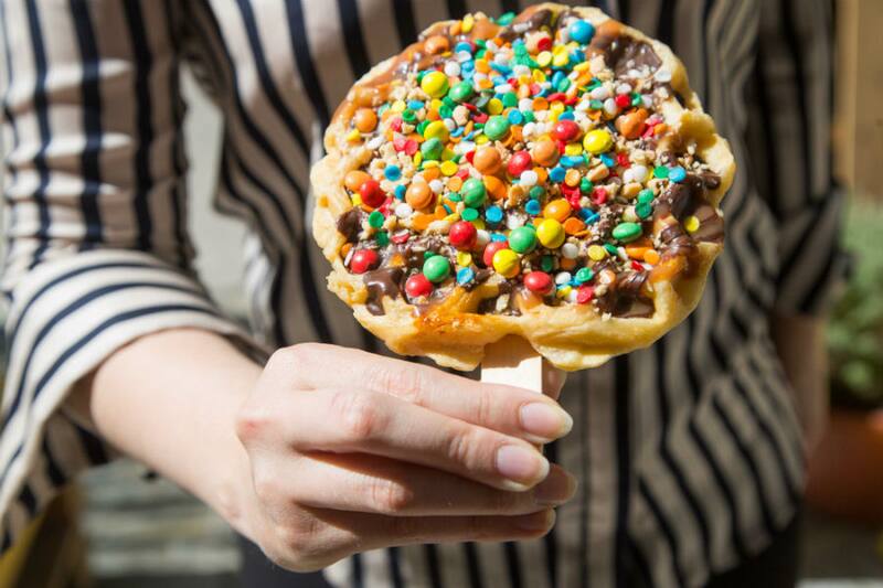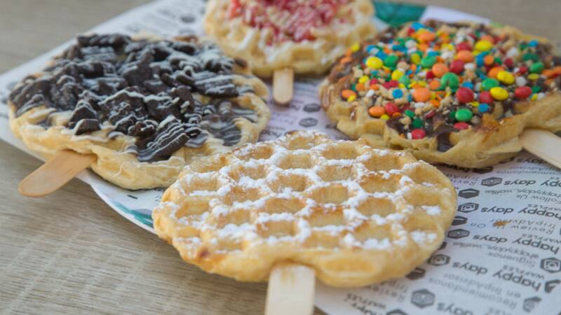 ¿Lo mejor? Ahí mismo preparan estas exquisitas masas dulces y saladas al estilo belga, las que hacen con un palito en uno de sus lados, para que puedas tomar tal como si fuera un helado de paleta.
