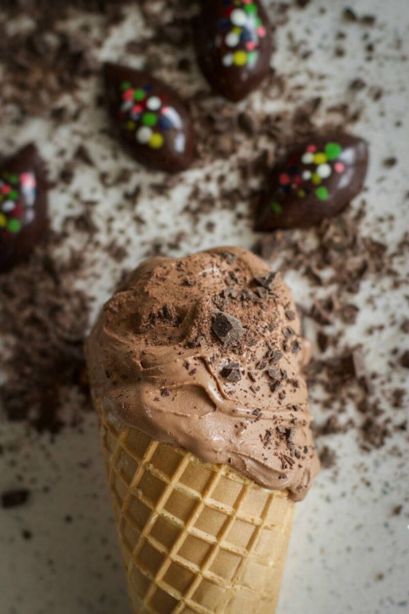 Los hay de sabores como avellanas y pistacho, con todo el sabor de estos frutos, o los de temporada, como melón calameño, durazno y palta, que resulta cremoso y con un leve toque dulce. También hay opciones para veganos, como los de chocolate de origen, entre ellos el de Ecuador, con 71% de cacao y un dejo amargo.