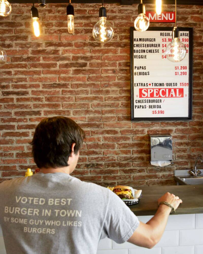 Y se trata de un local pequeño, con pocas mesas, donde preparan hamburguesas al estilo gringo: en pan esponjoso , con toque de dulzor justo e ingredientes de primera calidad. Comprueba lo buenas que son con “cheese burguer” ($ 3.900). Es una versión con carne delgadita pero bien gustosa y con el punto de cocción que quieras.