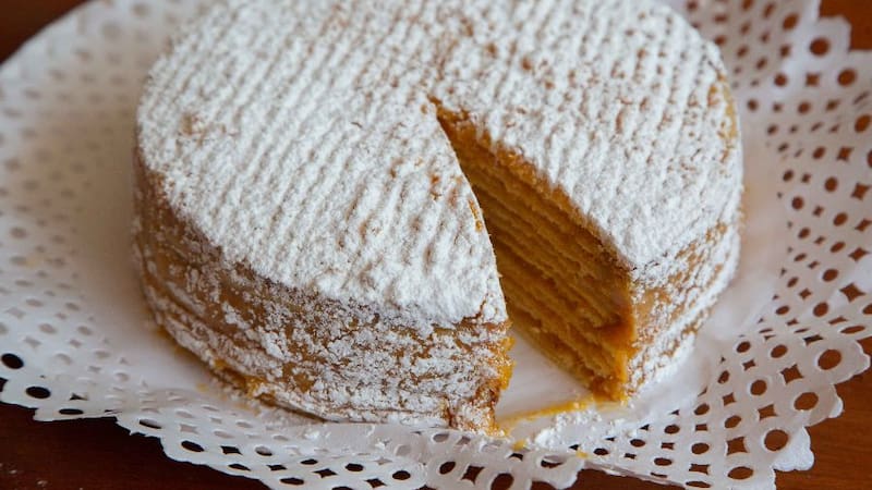 Si amas las tortas de panqueque, puedes encargar la Ana María (desde $ 20.000), que va rellena de crema de naranjas y mazapán.