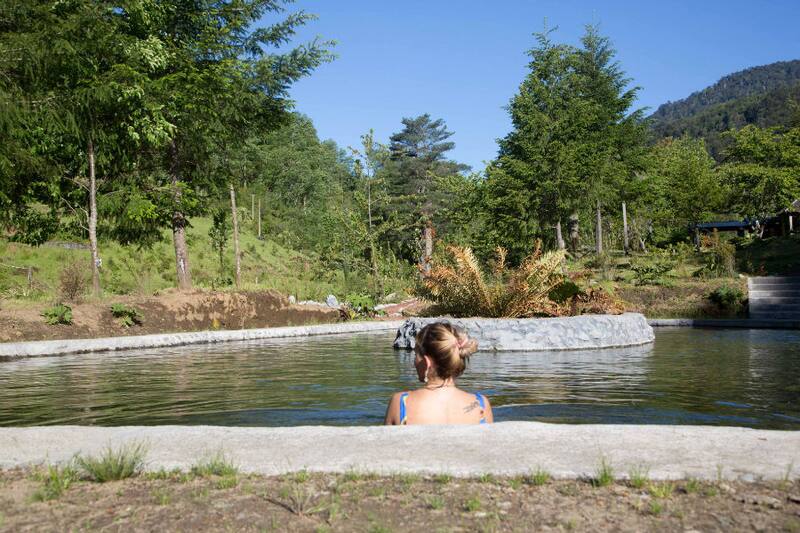 Por supuesto que en las piscinas no llega con esa temperatura, porque la entibian con el agua fría del río Rayintulelfu. Todo eso, para pasar unos agradables minutos mientras contemplas el paisaje rodeado de árboles como el mañío y el avellano.