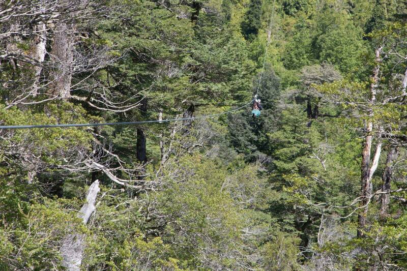 Lo mejor es la privilegiada vista que tendrás mientras te vas deslizando, las que miran al bosque, a hermosas caídas de agua y al volcán Mocho-Choshuenco, con más de 2400 metros de desnivel.