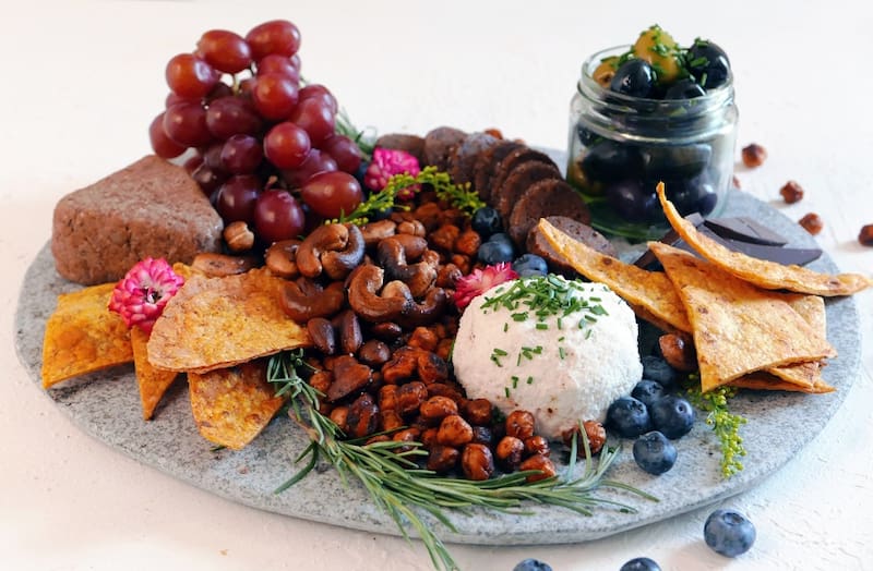 En cambio la "Charcuterie love box" es perfecta para un picoteo de a dos y trae preparaciones veganas como un "chorizo curado", con una textura muy similar a un chorizo y sabores ahumados y toques de canela y anís; un paté en base a almendras, nueces y miso orgánico; tostadas de curry; frutos secos al romero entre varias otras delicias.