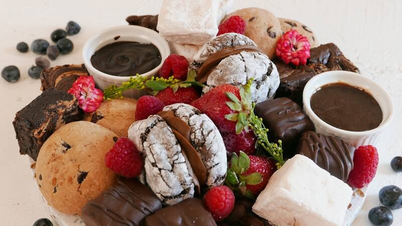 Puedes escoger entre dos opciones, ambas con el mismo precio, $ 25.900. Una es la "Sweet love box", con delicias dulces hechas sin productos de origen animal, como marshmallows elaborados en base a aquafaba, un bombón de twix relleno con salted caramel y una base de cacao, o un "salame de chocolate" relleno de crocante de vainilla, con nueces y almendras tostadas.